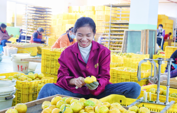 2022年,浦北县陈皮协会成立后,发动会员企业抱团发展,规模化规范化做强做大陈皮产业,积极参与构建“大基地+大加工+大科技+大融合+大服务”五位一体现代农业产业园,推动果、药、食、茶、健、文旅等产业融合发展。目前,浦北陈皮及其延伸产业链加工企业达100多家,带动农村群众就业2万多户近7万人,打造了产值超亿元村5个,百万元户213户。