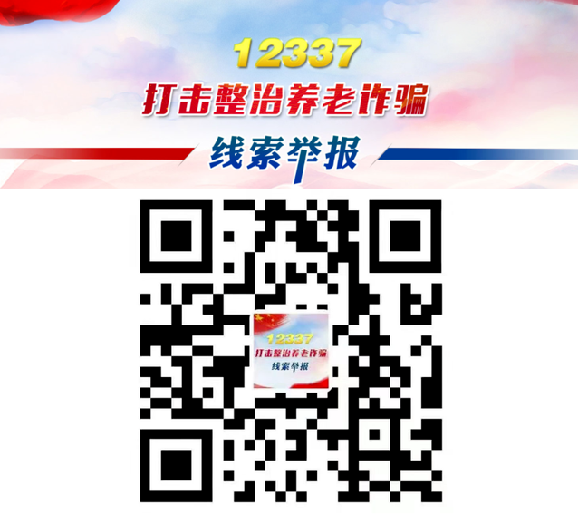 1.中央政法委已在12337智能化举报平台开通“打击整治养老诈骗”举报通道,广泛接收群众举报线索。群众可通过点击中国长安网智能化举报平台链接(http://jyzd.12337.gov.cn/#/)、关注中央政法委长安剑微信公众号、识别下方二维码等方式,登录中央政法委12337智能化举报平台,点击“打击整治养老诈骗线索举报入口”反映问题。
